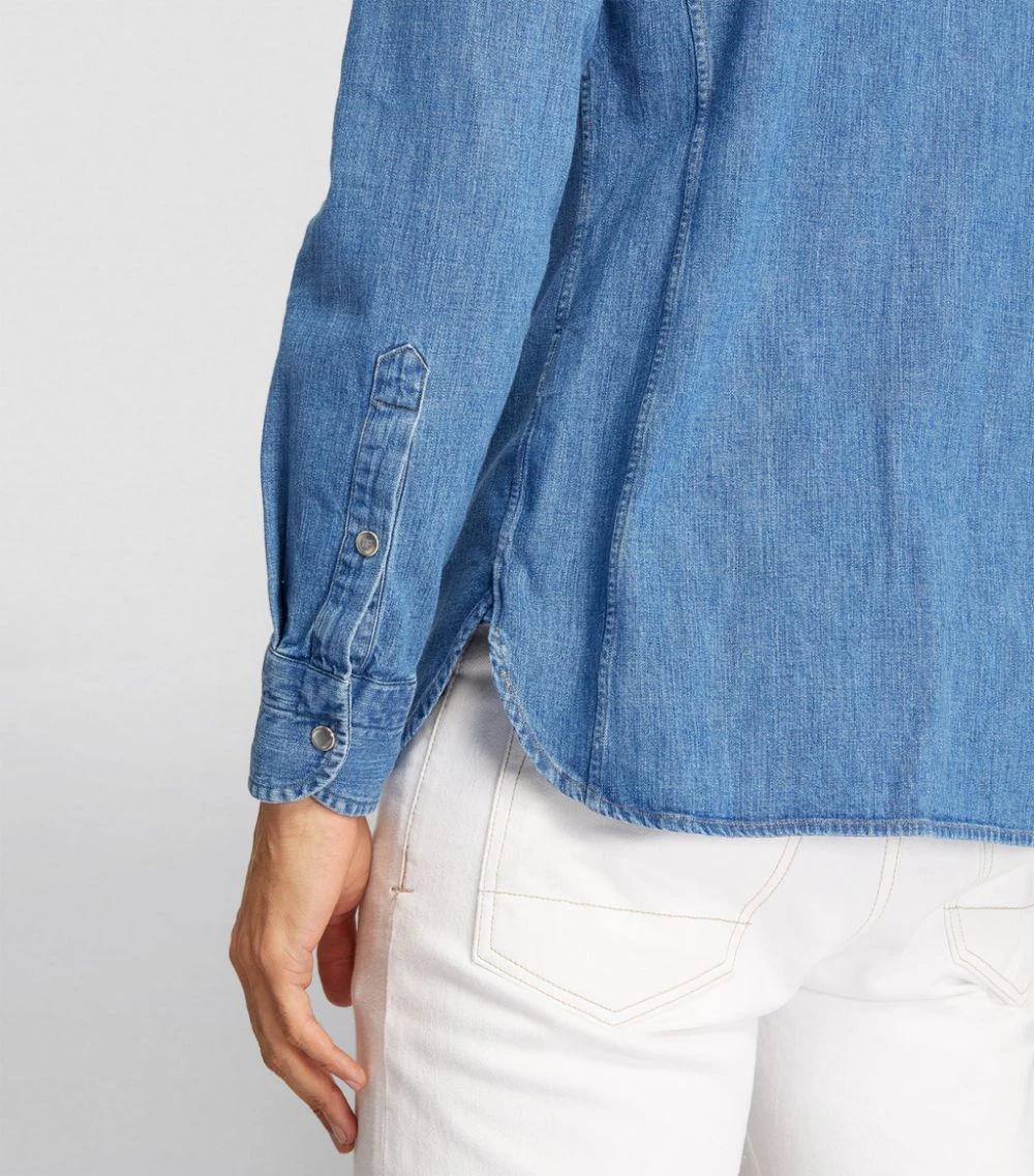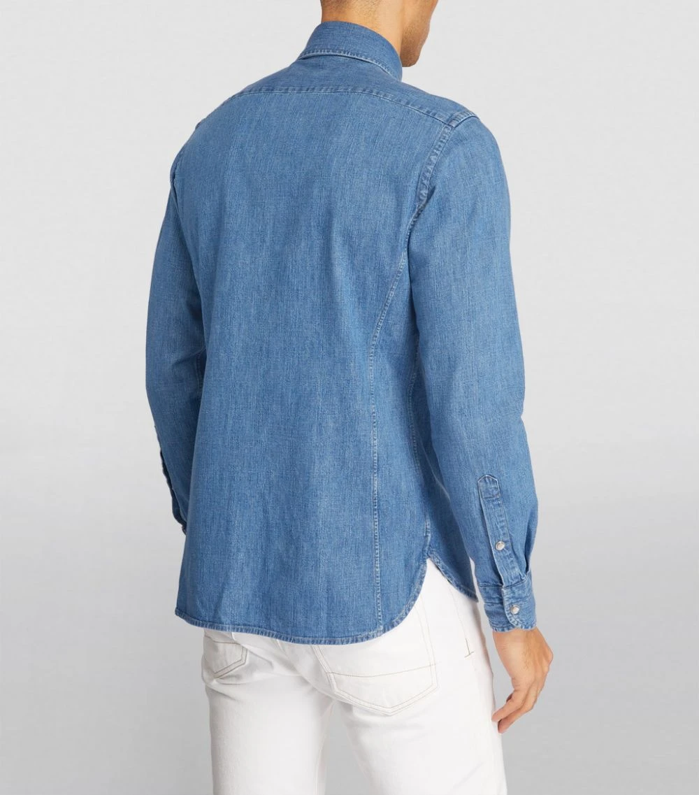 Leave it to TOM FORD to put a sophisticated spin on the denim shirt; its iteration borrows just the right amount of inspiration from the Wild West, creating a refined piece that will serve you for seasons to come. Rendered in a classic mid-wash shade, the lightweight shirt is accentuated with subtle takes on the cowboy theme – flap pockets to the chest, for example, and a slim fit that calls to be tucked into trousers, or even your blue jeans.How to wear Harrods: Style with jeans and Chelsea boots.