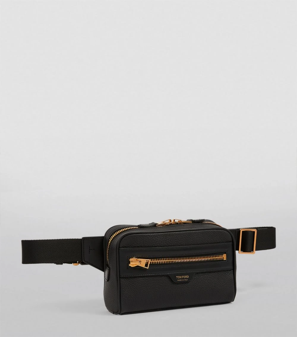 A TOM FORD bag, such as the Buckley belt bag silhouette, doesn’t require overt logos in order to convey its luxury associations; instead, it lets the opulence of its aesthetic speak for itself. In this instance, grained leather constitutes the surface of the piece, accentuated by gold-tone hardware that casts a sense of extravagance throughout the design. The small, contemporary shape reflects a fusion of the brand’s premium quality with youthful, street style-ready forms.