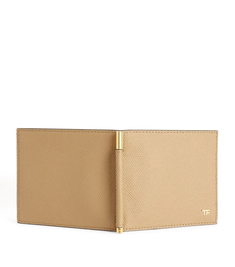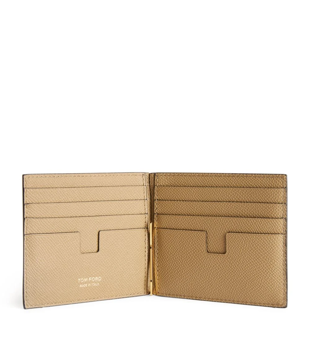 Imagined in supple grained leather, this TOM FORD money clip wallet will keep all your monetary essentials effortlessly close to hand. Hosting eight card slots and glimmering gold-tone hardware, the Italian-crafted accessory is punctuated with logo detailing embossed to the front for a smart, signature finish recognised around the world.