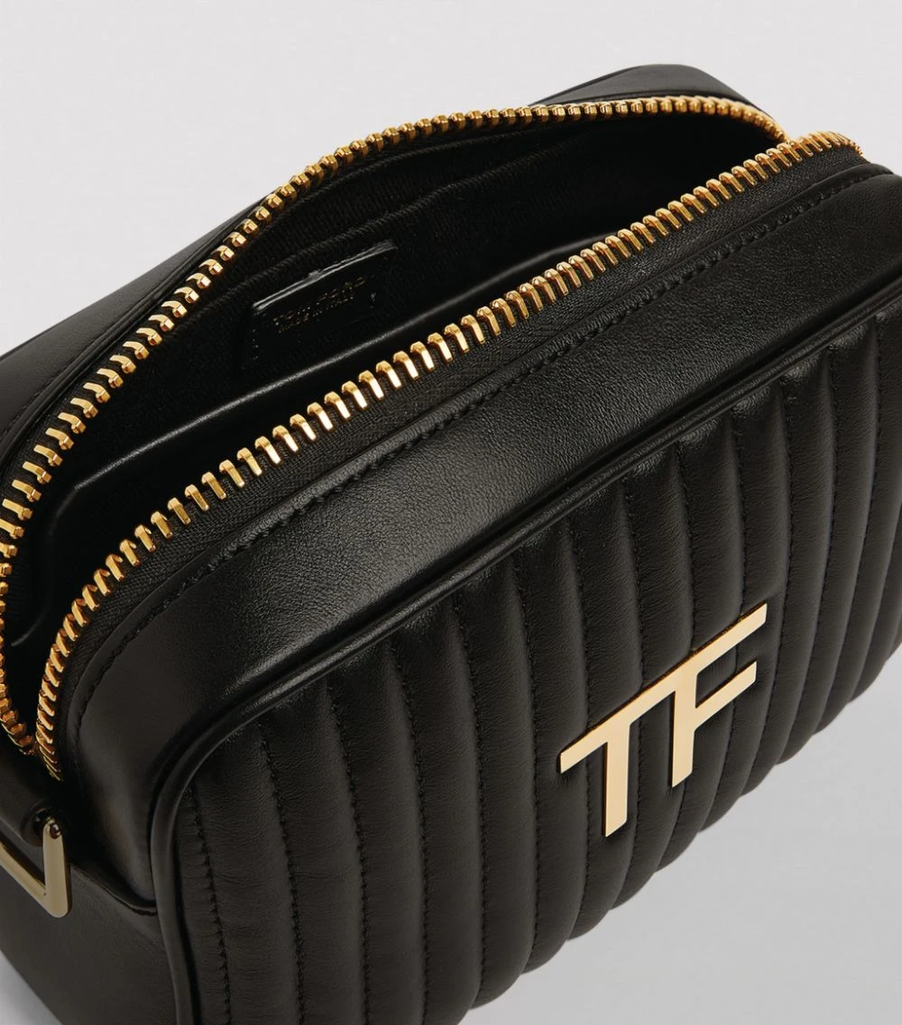 A versatile styling option from the coveted label, this TOM FORD camera bag boasts a structured silhouette crafted from sumptuous, quilted leather. Adorned with a polished gold-tone TF logo, the boxy profile suspends from an adjustable shoulder strap and keeps your everyday essentials secure through a spacious, zipped compartment.