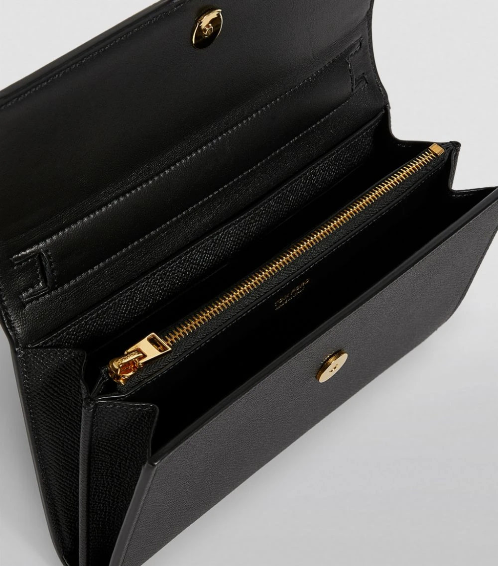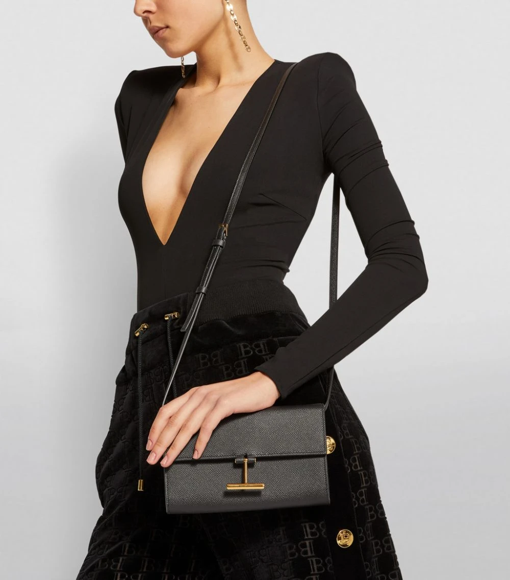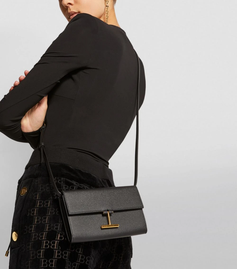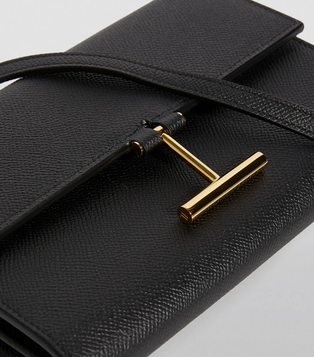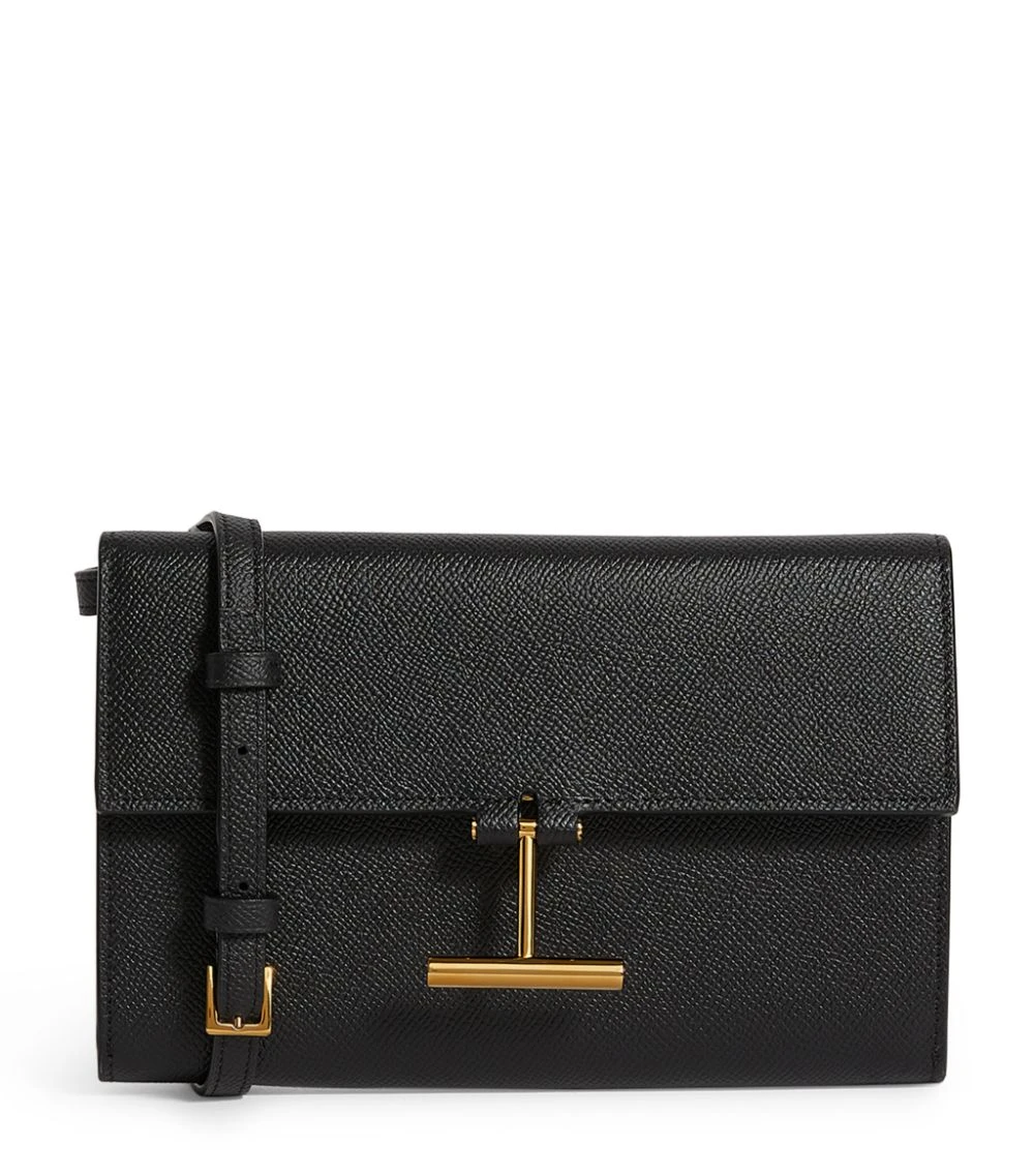 Defined by its polished T-bar hardware, this clutch bag is a sophisticated addition to TOM FORD’s coveted Tara family. It showcases a boxy silhouette that’s been realised in grained Italian leather, while the gold-tone hardware vows to catch the light of any disco ball. Tuck it under the arm of your finest tailoring to be a picture of modern femininity.