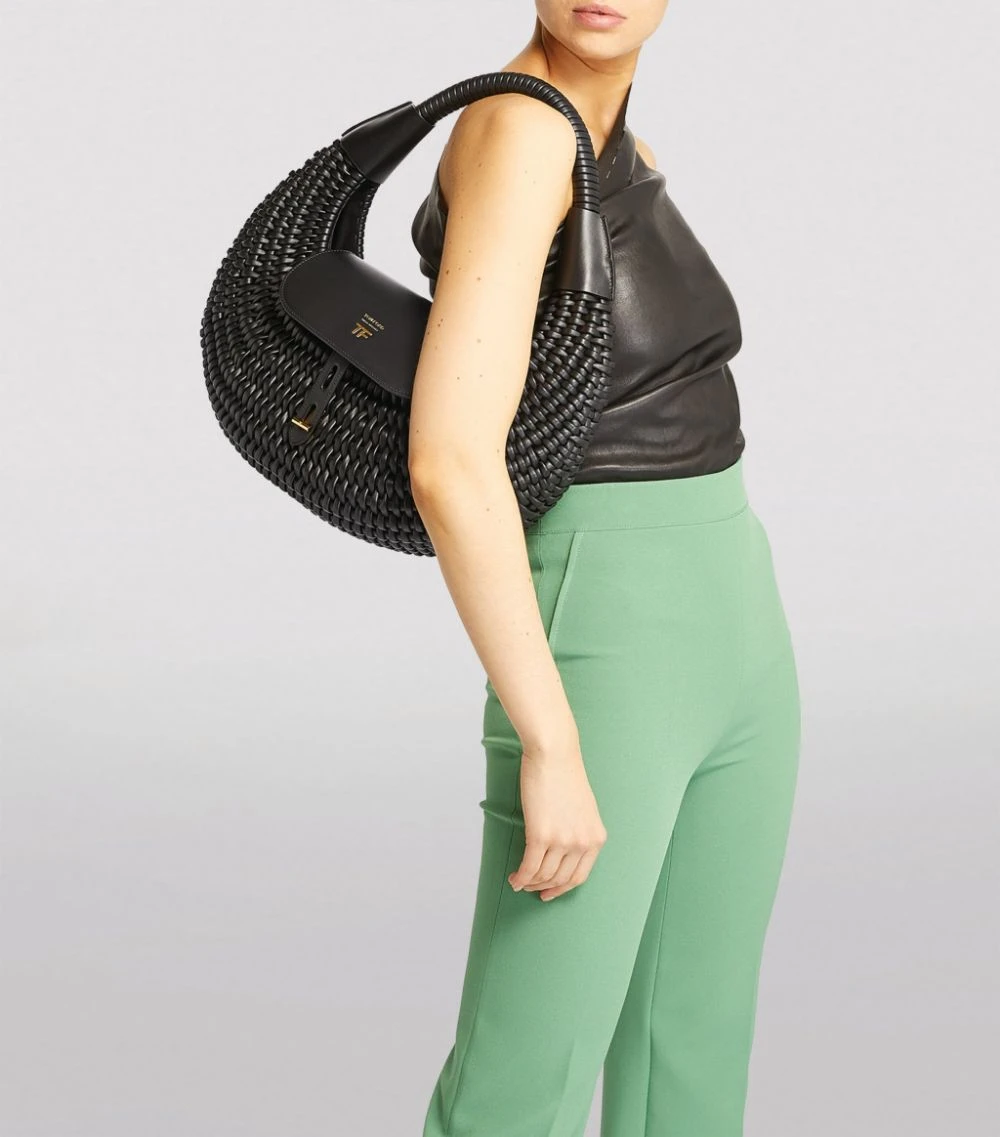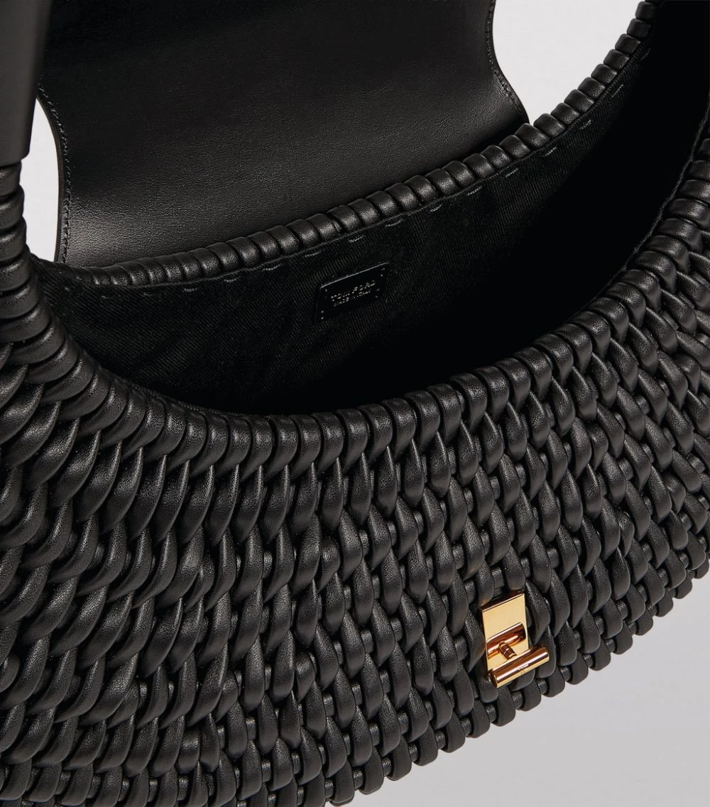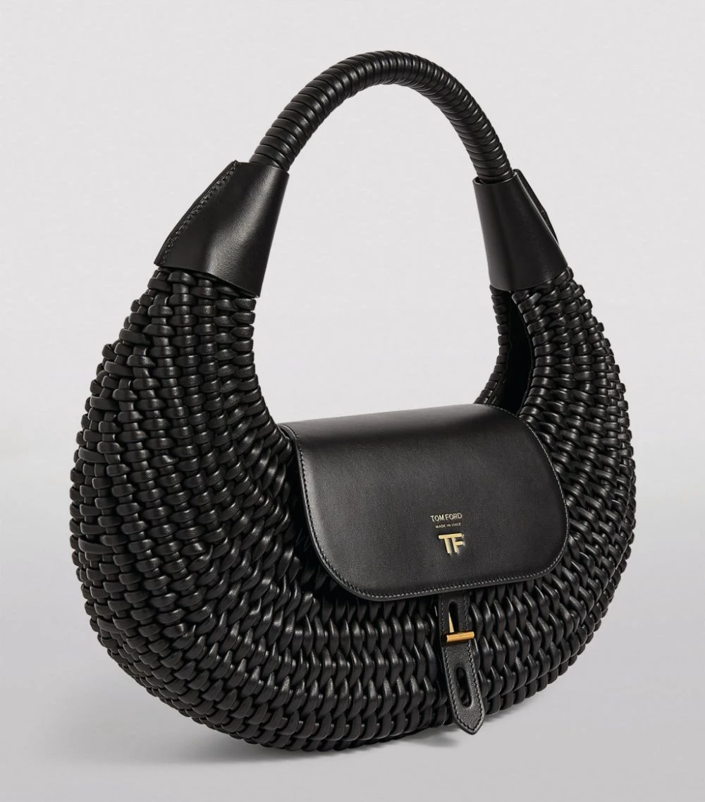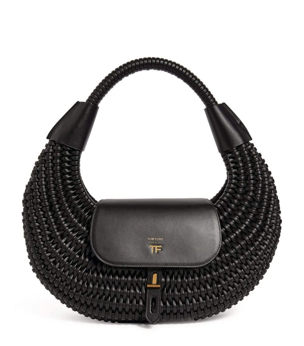 The expert Italian craftsmanship that goes into this TOM FORD hobo bag guarantees its timeless appeal. Smooth leather is woven into a braided structure, adding a sense of texture reminiscent of basket bags, while the polished gold-tone clasp nods to the brand’s signature sense of all-out glamour.