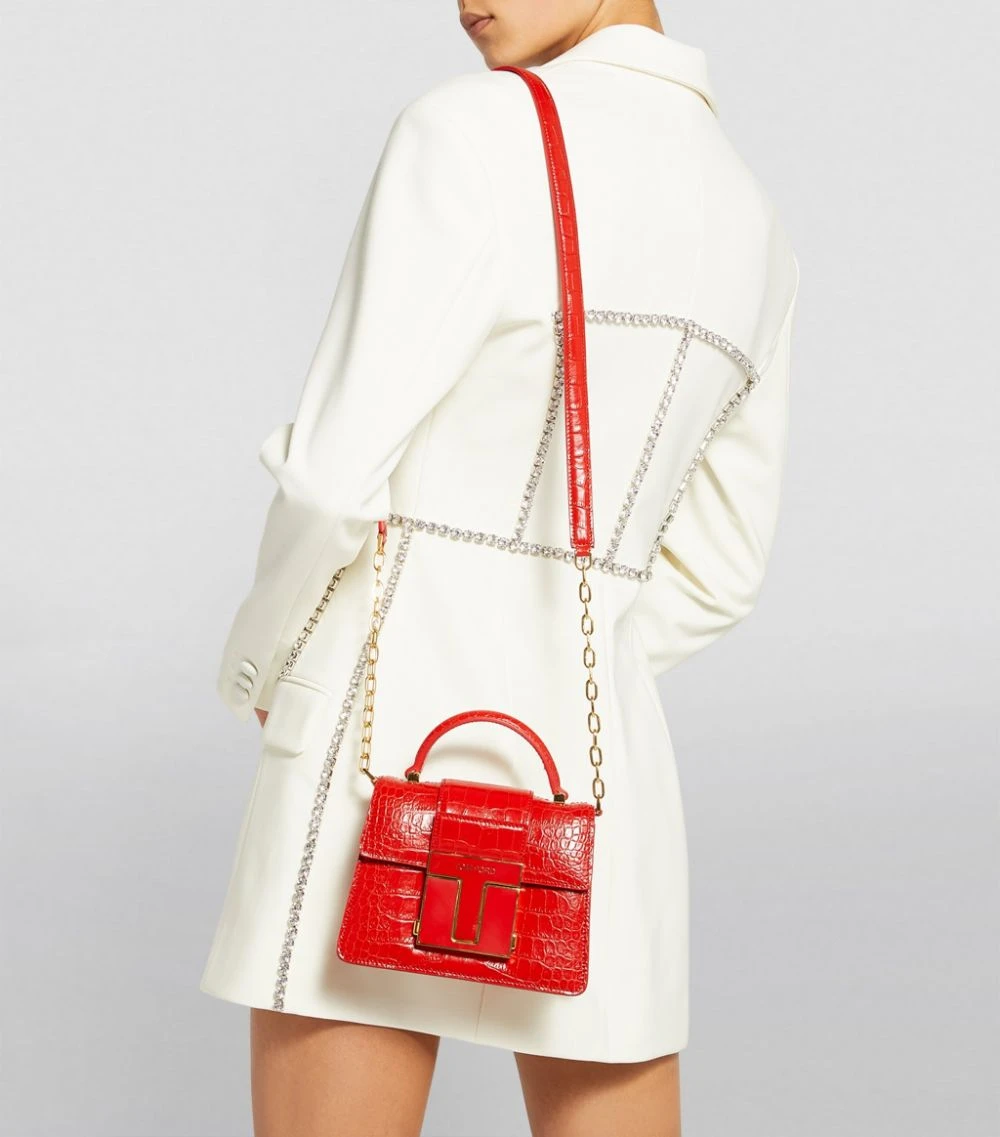 Never one to shy away from high-octane glamour, TOM FORD grants your accessories collection sartorial gravitas with the 001 top-handle bag. While its shape is undeniably minimalist, the croc-embossed leather exterior instantly captures the eye; note the presence of the brand’s signature T clasp and gold-tone hardware expressing the style’s potential to become a standout staple.
