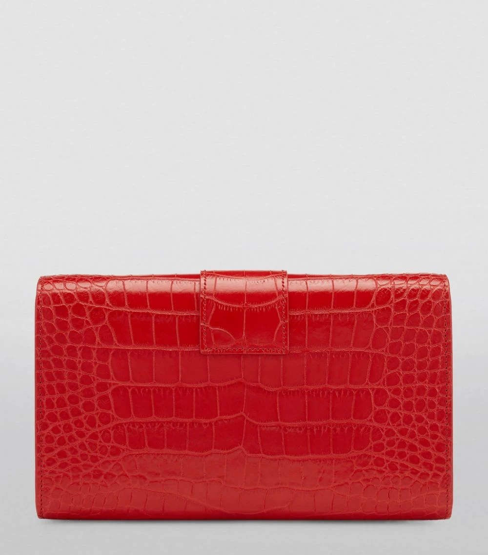 As its name might suggest, the TOM FORD T Clasp bag revolves around its fastening – a sleek detail in which a gold-tone T motif secures the flap shut. When closed, it presents a solid plate of opulent gold-tone metal that stands in exquisite contrast to the silhouette’s luxe croc-embossed leather exterior.