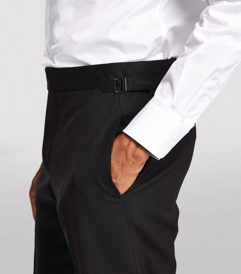 The TOM FORD O’Connor two-piece suit doesn’t mess with tradition – the brand recognises the greatness of a classic suit, and simply perfects the design with its own inimitable touch. Offering endless sophistication, the silhouette is business as usual; note the peaked lapels and double button fastening to the jacket, and the ultra-sharp pressed pleats to the trousers.