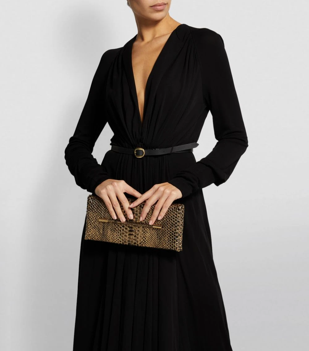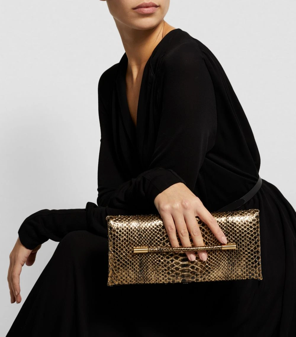Inject instant elegance into evening ensembles with the Ava clutch bag from TOM FORD. Imagined in glossy, ultra-luxurious python skin, it boasts a structured, compact silhouette that comes complete with a contrasting side strap for a secure grip.