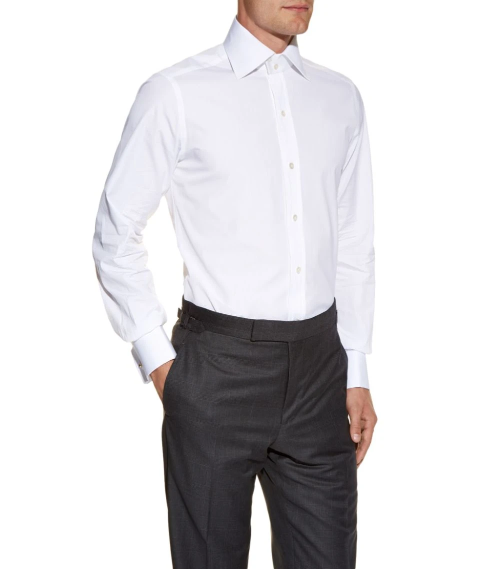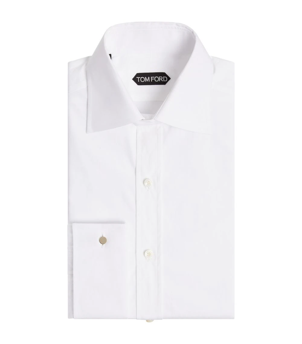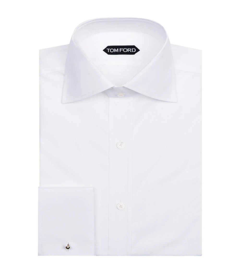 Infuse TOM FORD’s impeccable sophistication into your formal wardrobe courtesy of this crisp, sumptuously soft cotton shirt. With a smart point collar, the flattering slim-fit silhouette follows the lines of the torso and features classic French cuffs, perfect for layering beneath the designer’s tailored suits.