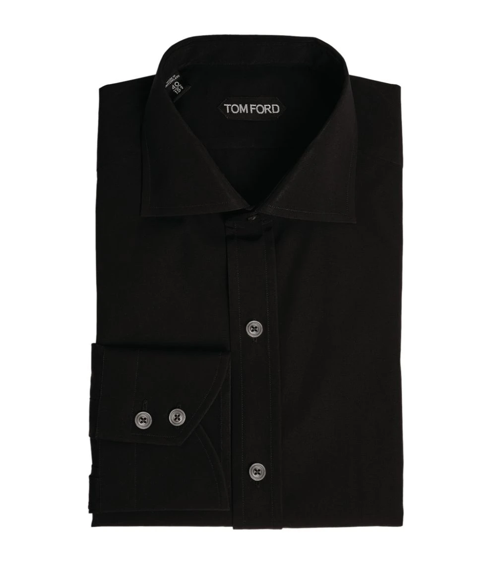 Infuse TOM FORD’s impeccable sophistication into your formal wardrobe courtesy of this crisp, luxuriously soft cotton shirt. Boasting a smart spread collar, the flattering silhouette follows the lines of the torso and features two-button cuffs, perfect for layering beneath the designer’s tailored suits.
